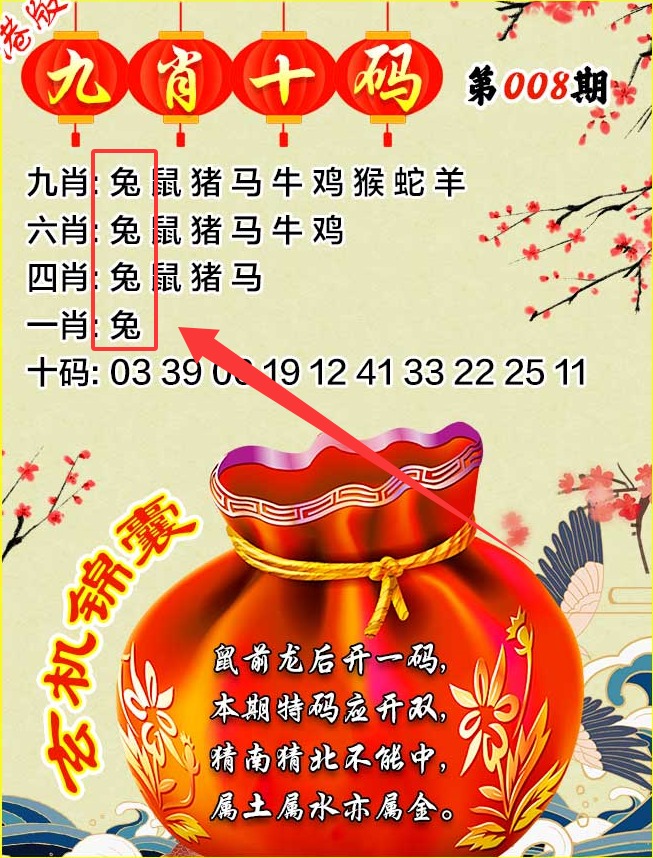 011期藏宝图:【干戈偃息岁丰穰】 浅解:岁丰穰,解鸡虎羊兔蛇龙 综合解肖:鸡虎羊兔蛇龙 |