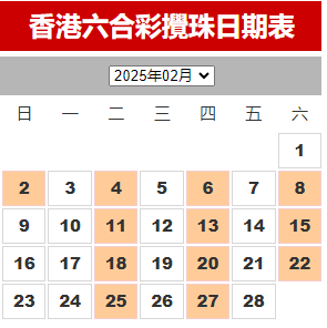 2025年02月份【搅珠日期表查询】